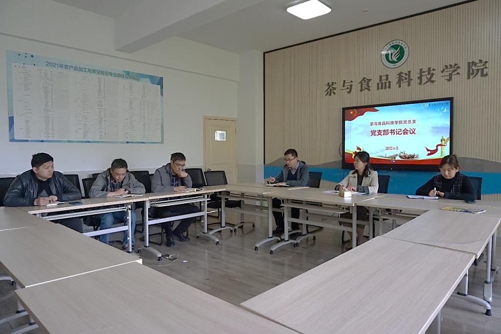 4月10日,茶与食品科技学院党总支在综合楼317召开了党支部书记会议。会议由党总支书记谢春芹主持,党总支委员、教工第一支部、教工第二支部和学生支部书记参加了此次会议。
