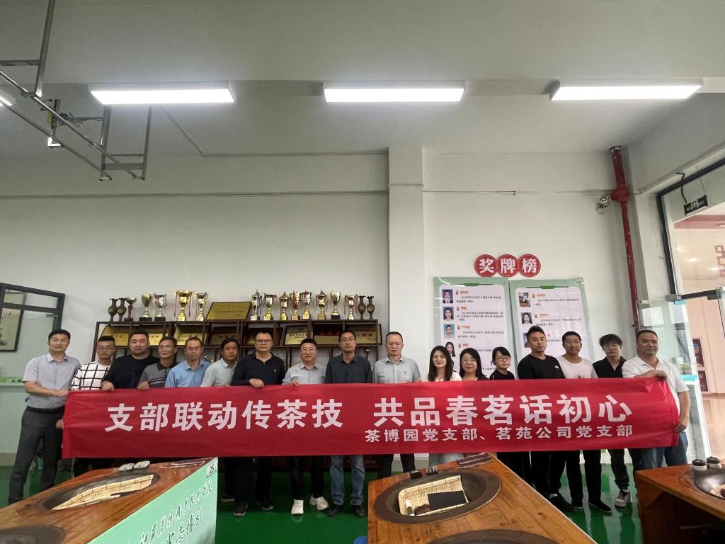 为深入推进基层党组织建设,创新“党建+文化传承”融合模式,充分发挥党支部战斗堡垒作用与党员先锋模范作用,10月15日下午,茶博园党支部与茗苑公司党支部联合开展以“支部联动传茶技,共品春茗话初心”为主题的炒茶体验活动。
