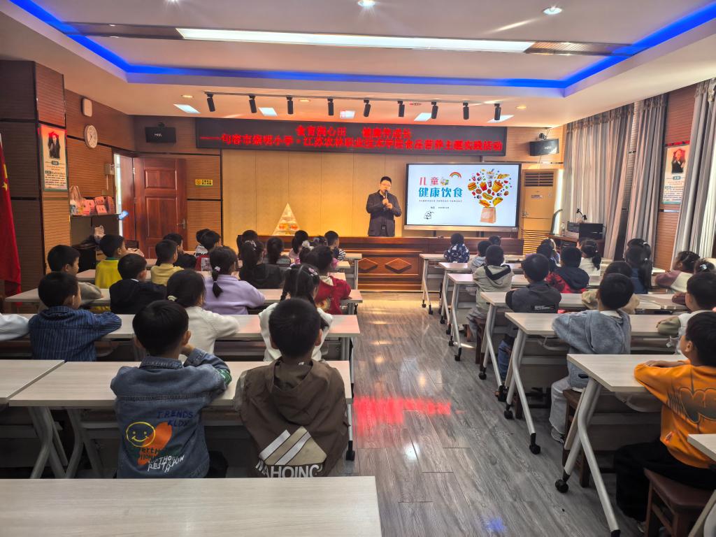 活动伊始,茶与食品系党支部书记陶程以《儿童健康饮食》为题开展科普讲座,结合低学生认知特点,用通俗案例讲解常见食物营养成分与不良饮食习惯危害,传递科学饮食观念,彰显“食匠先锋”专业服务社会的理念。
